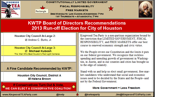 Kingwood TEA Party 2014 Primary Voter Recommendations